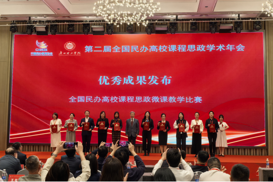 20日上午,大会举行了2025年度民办高校课程思政建设优秀成果发布与表彰仪式,并为全国民办高校课程思政建设比赛、课程思政微课教学比赛的获奖代表颁奖。乐丽琴教授作为黄河科技学院优秀微课和优秀案例获奖教师代表上台领奖。此次表彰,我校共有4名教师获奖,分别是艺体学部薛慧敏老师荣获微课作品一等奖,艺体学部宋晓青老师荣获微课作品二等奖,医学部张翠利老师荣获微课作品三等奖,商学部宋海静老师荣获优秀案例奖。